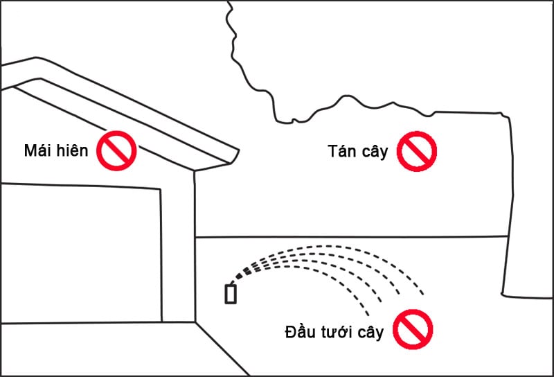 Không được lắp đặt cảm biến mưa ở những nơi bị che khuất khi mưa như dưới mái hiên nhà, tường rào cao, cây cối có tán to rậm…, điều đó sẽ làm cảm biến không đo được lượng nước mưa khi trời mưa.